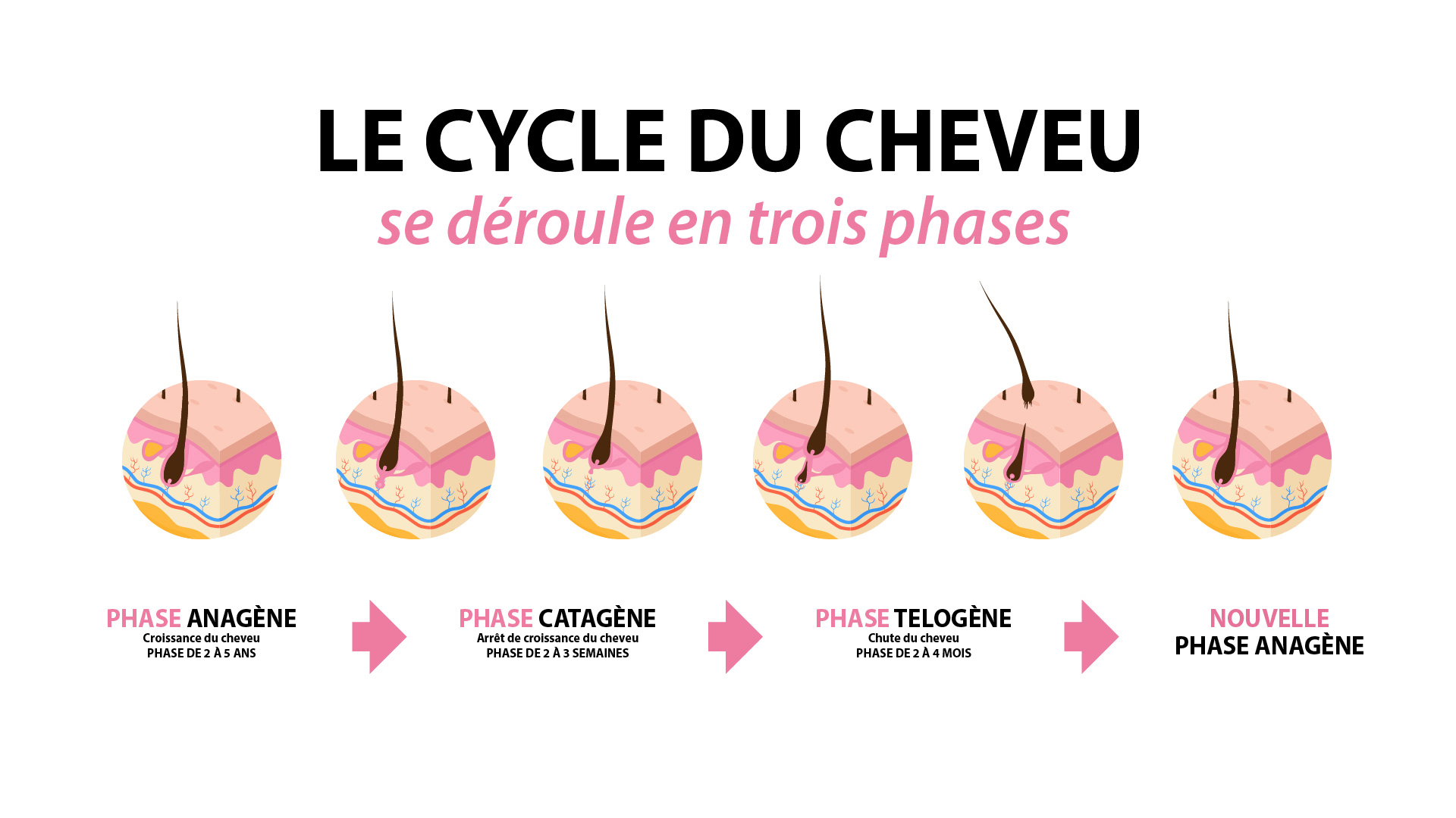 Concrètement, la DHT agit en raccourcissant la phase de croissance des cheveux (phase anagène) et en allongeant les phases de repos (catagène) et de chute (télogène). En conséquence, les cheveux ont moins de temps pour pousser et tombent plus rapidement qu’ils ne sont remplacés. C’est ce déséquilibre qui, au fil du temps, devient visible sous forme d’éclaircissement de la chevelure.